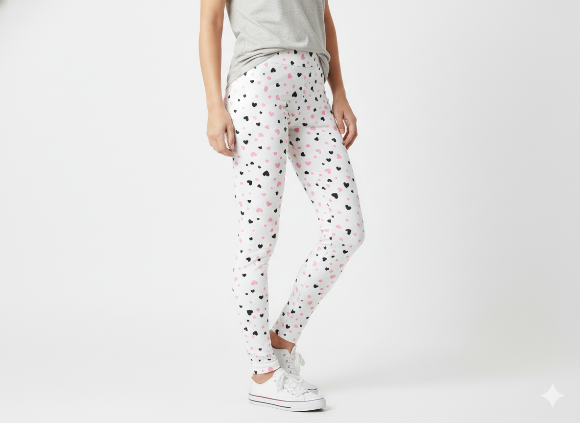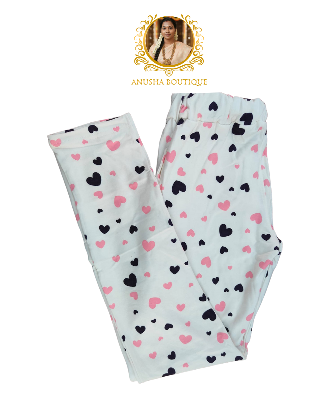 White Track Pant with Pink & Black Hearts – Soft & Stretchable